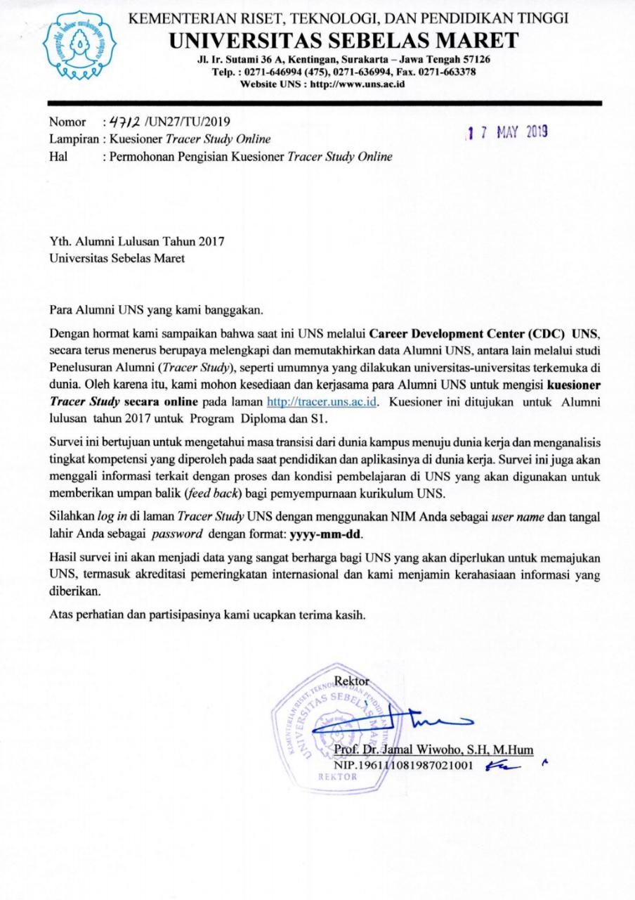 26 Sep 2018 Registrasi Masuk Daftar Perusahaan UNS SOLO JOB FAIR XVIII 26. REPUBLIKACOID SOLO -- Universitas Sebelas Maret UNS Solo bekerja sama dengan Career Development Center CDC UNS bakal kembali menggelar acara Job Fair atau bursa kerja pada Rabu-Kamis 28294 setelah vakum selama setahun lantaran pandemi Covid-19. Sebelum mendaftar pastikan sudah aktif sebag.